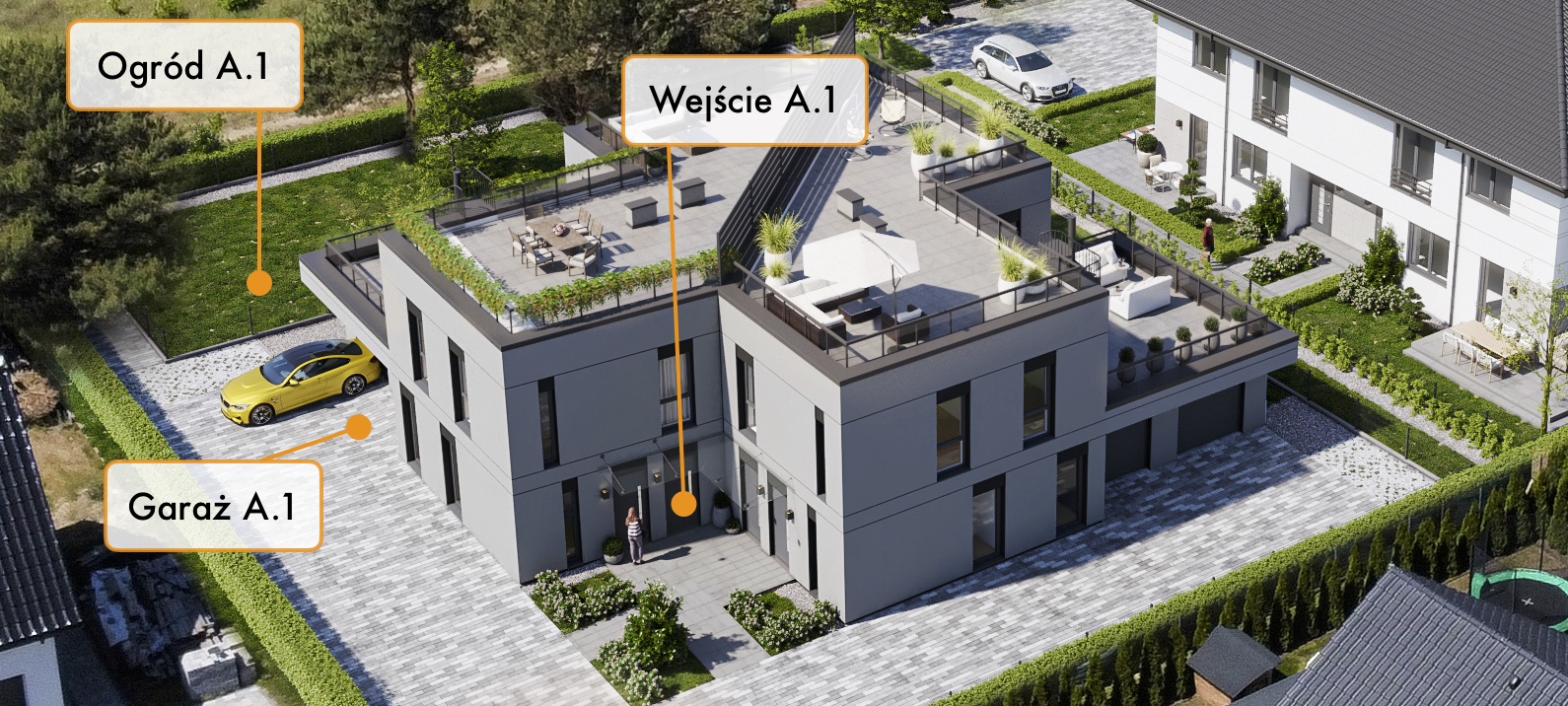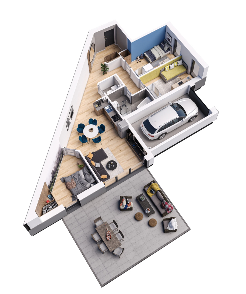To nowoczesne mieszkanie o unikalnym układzie oferuje przestronne wnętrza i wyjątkowy komfort. Składa się z jasnej strefy dziennej obejmującej salon z aneksem kuchennym, trzech sypialni oraz funkcjonalnej łazienki i WC. Ogromnym atutem jest duży taras i ogród idealny do relaksu i spotkań towarzyskich, a także prywatny garaż. Stylowe wykończenie, funkcjonalne rozwiązania oraz duże przeszklenia zapewniają wyjątkową atmosferę i maksymalne doświetlenie wnętrz. Idealne miejsce dla osób ceniących komfort i nowoczesny design!