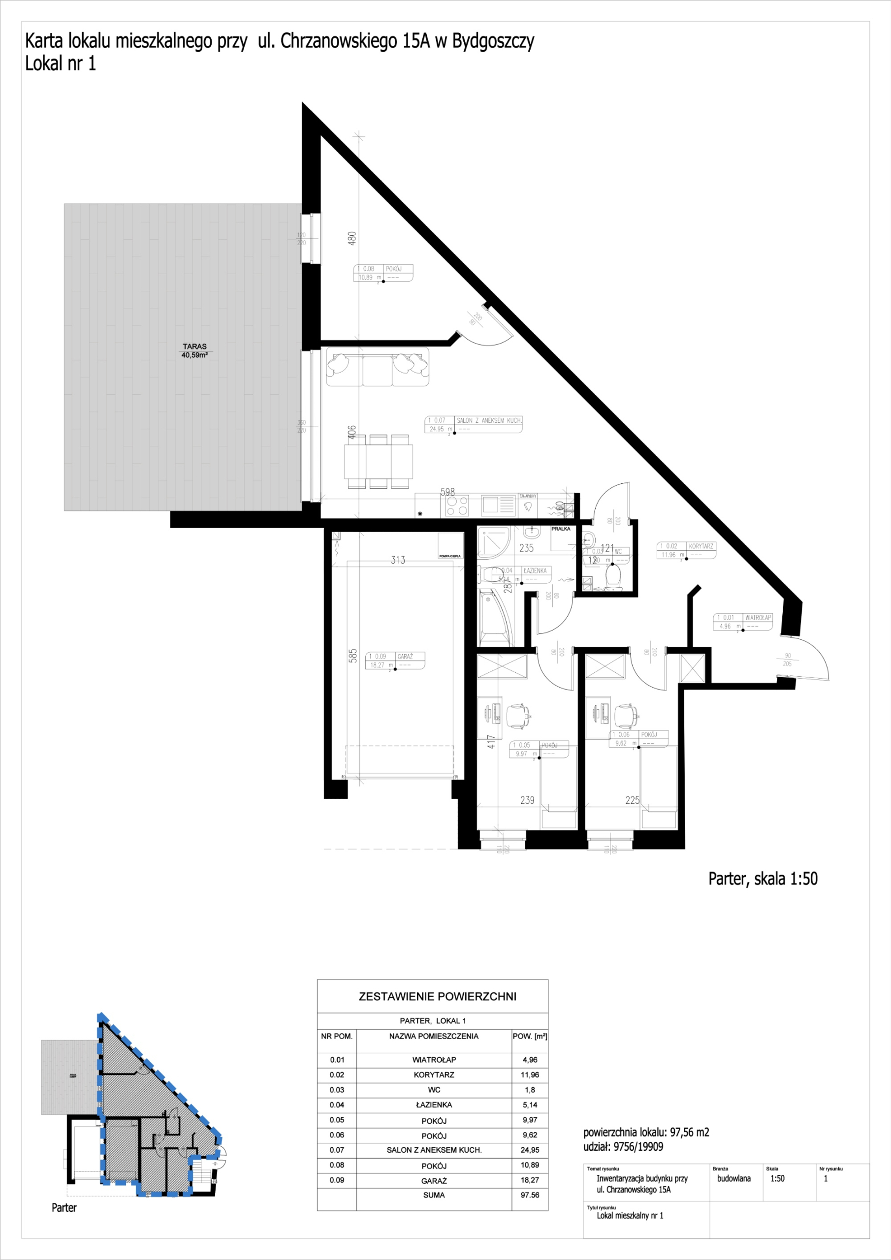 0.09 garaż – 18,27 m2